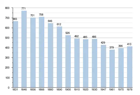 - Sources:INS, Rem:1831 jusqu'en 1970=recensements, 1976= nombre d'habitants au 31 décembre