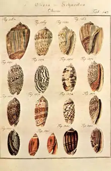 Planche représentant des Olividae extraite de Neues systematisches Conchylien-Cabinet