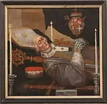Portrait de l'évêque avec ses armoiries. Gravure de Leonhard Heckenauer, vers 1680. | ||||||||