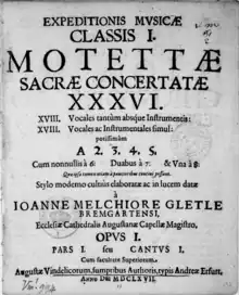 Johann Melchior Gletle (Bremgarten, – Augsbourg, ) est un organiste, maître de chapelle et compositeur suisse.