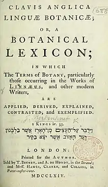 - (la) Clavis anglica linguae botanicae, Londres, Thomas Becket & Peter Abraham De Hondt, , 2e édition éd. (lire en ligne)