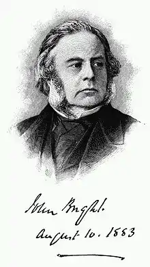 John Bright ( – ) est un homme politique britannique, membre du parti whig. Il a pris une grande part à l'Anti Corn Law League avec Richard Cobden.