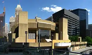 Certains de ses bâtiments plus récents peuvent être attribués au brutalisme comme le « Mechanic Theater », menacé de démolition.