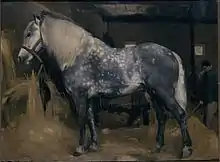 - Percheron dans une écurie, huile sur toile, 54 × 73 cm[6]