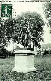- L'Aveugle et le paralytique ou La Fraternité, groupe en bronze anciennement dans le jardin public de Cambrai, érigé en 1885 d'après le modèle en plâtre exposé au Salon de 1884, détruit en 1917, restitué en 1934, envoyé à la fonte en 1942[69].