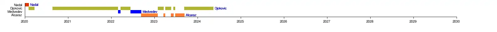 | Gel des points ATP et du nombre de semaines à la tête du classement ATP dû à la pandémie de Covid-19. | ||||
