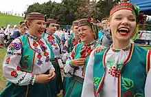 Célébration du Jour de l'indépendance à Louhansk en 2013 devant la statue de Taras Chevtchenko. | |