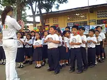 Des élèves de l'école élémentaire centrale de Lupok, Guiuan, Samar oriental, Philippines, durant la Journée mondiale du lavage des mains en 2015.