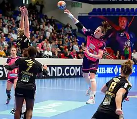 Jovana Stoiljković au tir avec Nantes face à Issy Paris Hand, le 17 avril 2016.