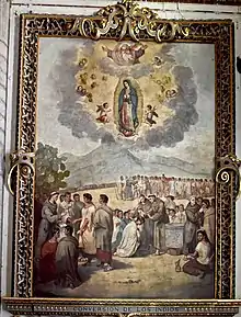 Au XVIIe siècle, Miguel Sánchez interpréta la Vierge comme s’adressant spécifiquement aux Indiens, tout en notant que Juan Diego lui-même considérait tous les habitants de la Nouvelle-Espagne comme ses héritiers spirituels, les héritiers de la « sainte image »[47]. Les propres paroles de la Vierge à Juan Diego, rapportées par Sánchez, étaient (sur ce point) équivoques : elle cherchait un endroit à Tepeyac où elle pourrait se montrer : « en tant que mère compatissante envers vous et les vôtres, envers mes dévots, envers ceux qui devraient me chercher pour obtenir le soulagement de leurs besoins. »[48].