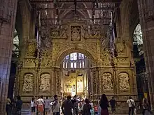 En 1534 Juan de Badajoz le Jeune a démoli les palais royaux romans de la collégiale de San Isidoro pour y construire à la place la bibliothèque avec la première voûte elliptique de la Renaissance espagnole et pour permettre l'accès a dessiné une porte renaissante qui permet de communiquer avec la tribune romane transformée en salle capitulaire. La même année, Juan de Juni arrive à León où il a travaillé au Convento de San Marcos et a probablement sculpté pour des scènes du transcoro.