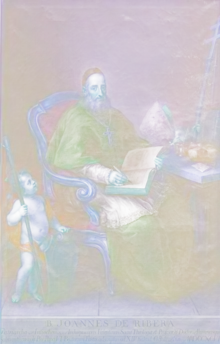 Juan de Ribera (Séville, 1532 - Valence, 1611) est considéré comme le prélat modèle de la Contre-Réforme en Espagne. Evêque de Badajoz, puis archevêque de Valence et patriarche latin d'Antioche, ainsi que vice-roi de Catalogne, il a été béatifié par Pie VI en 1796, et canonisé par Jean XXIII en 1960.