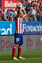 Juanfran avec l'Atlético de Madrid en . | ||