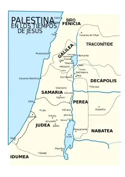 Carte montrant les frontières politiques et les villes importantes de la Judée, au Ier siècle de notre ère.