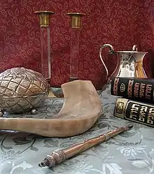 • Cor du jour de la sonnerie, phylactères de prière et quatre espèces.