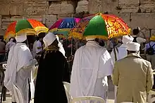 Paradoxalement, malgré ce rejet, durant les années 1950 et 1960 les Beta Israel se rapprochent du judaïsme orthodoxe. Leur appartenance au judaïsme mondial est maintenant acceptée et affirmée. L’étoile de David pénètre rapidement, remplace sur le toit des lieux de culte les anciens symboles[60],[61]. Des fêtes rabbiniques commencent à être pratiquées. Une nouvelle génération de qésotch (ou kessim, prêtres) sort des écoles juives et diffuse ces pratiques[62].