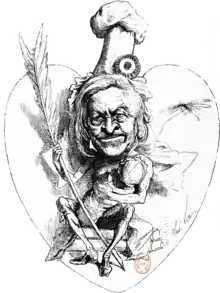 Dans un autre genre paraît en 1862 La Sorcière - qui connaît un « succès de scandale »[47] et fait l'objet de nombre d'interprétations psychologiques et littéraires[48]. La Sorcière est développé notamment à partir de l'Histoire de l'Inquisition en France, un ouvrage paru en 1829 qui s'est avéré une des nombreuses forgeries du faussaire Lamothe-Langon[49], prétendant se baser un procès en sorcellerie médiéval d’après des documents inédits des archives ecclésiastiques du diocèse de Toulouse[alpha 5], pas plus que n'existe de chasse aux sorcières au Moyen Âge, ce phénomène ne débutant pas avant le XVIe siècle[51]. Les travaux de Michelet ont été régulièrement repris par des historiens et auteurs postérieurs qui, sans examiner la véracité des sources prétendues par Lamothe-Langon, ont répercuté la forgerie au point que les procès de sorcières imaginés par celui-ci sont devenus un standard de l'historiographie de la « chasse aux sorcières »[51]. En outre, Michelet y accrédite la légende du droit de cuissage, bien qu'aucune trace d'une telle pratique n'ait jamais trouvée dans le droit positif français ni dans aucune archive[52].