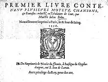 - six chansons transcrites pour le luth, par Jacques Arcadelt, Pierre Certon, Roger Pathie dit Rogier (2) et Pierre Sandrin (2), qui sont très ornementées.