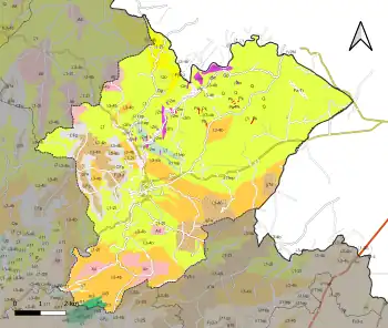 La superficie cadastrale de la commune publiée par l'Insee, qui sert de référence dans toutes les statistiques, est de 66,67 km2[8],[14],[Note 2]. La superficie géographique, issue de la BD Topo, composante du Référentiel à grande échelle produit par l'IGN, est quant à elle de 68,05 km2[5].