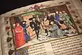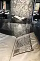 Le premier niveau du musée présente les différentes étapes de la réalisation d’un manuscrit : préparation du support, travail du copiste, enluminure et reliure[3].