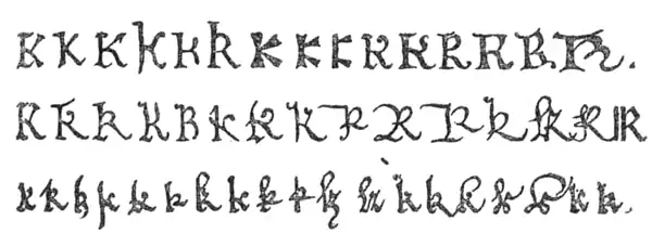 On retrouve ces mêmes trois variantes pour le « k » (bas-de-casse) avec un quatrième tracé où la diagonale du haut forme une boucle.