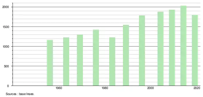 En 2019, la commune comptait 1 803 habitants[Note 1], en diminution de 11,31 % par rapport à 2014 (Nouvelle-Calédonie : +0,98 %).