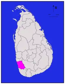 Le district de Kalutara est le district le plus méridional de la province de l'Ouest du Sri Lanka. Il est limitrophe du district de Colombo au nord, du district de Ratnapura (dans la province de Sabaragamuwa) à l'est et du district de Galle au sud.