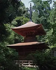 Le sanctuaire abrite un grand camphrier shinboku et comprend une pagode tahōtō datée de 1534[5].