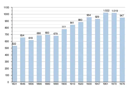 - Sources : INS, Rem. : 1831 jusqu'en 1970 = recensements, 1976 = nombre d'habitants au 31 décembre.