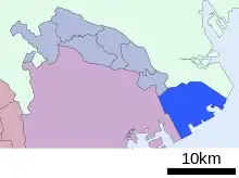 - (en) Cet article est partiellement ou en totalité issu de l’article de Wikipédia en anglais intitulé « Kawasaki-ku, Kawasaki » (voir la liste des auteurs).