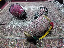 Un morceau de cuir est tendu à chaque extrémité, formant ainsi un membranophone. Une version plus grande de l'instrument est utilisée dans la musique liturgique de l'Église orthodoxe, alors que les versions plus petites sont utilisées pour les célébrations laïques[1].