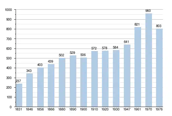 - Sources:INS, Rem:1831 jusqu'en 1970=recensements, 1976= nombre d'habitants au 31 décembre
