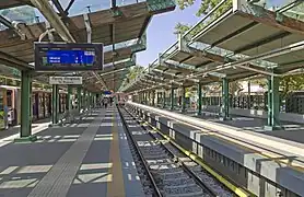 En tant que station terminus, elle dispose d'une arrière-gare de cinq voies de garage, plus une voie en impasse parallèle aux voies de service voyageurs. Pour que les rames soient acheminées aux voies 5, 6 et 7 de l'arrière-gare, en raison de leur emplacement, elles doivent effectuer deux rebroussements.