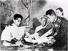 En 1940, alors que les forces japonaises lancent une offensive destinée à liquider la guérilla communiste, Kim devient commandant d'une des trois Armées plus particulièrement actives dans le sud de la Mandchourie. Dans les combats qui s'ensuivent, la guérilla est balayée, et Kim est le seul commandant qui n'est pas tué ou capturé. Poursuivi par les Japonais qui sont renseignés par des résistants capturés, dont l'ancien supérieur de Kim, il finit par se replier en 1941 en Union soviétique avec ce qui reste de sa division et est intégré dans une unité internationale de l'Armée rouge[10] où il atteint le grade de capitaine[11] ou de major[12]. Il existe des rapports sur des incursions de Kim en Mandchourie, mais il ne semble pas avoir participé aux combats qui suivent la déclaration de guerre de l’URSS et l’invasion du Mandchoukuo par les forces soviétiques le [13]. C'est donc dans un Pyongyang occupé par les Soviétiques qu'il débarque le avec son groupe de résistants coréens[14]. Selon certaines sources, lui et ses camarades sont en uniforme de l'Armée rouge, Kim Il-sung portant les insignes de capitaine ou de major[15].