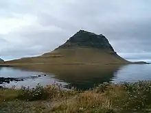 Vue de Kirkjufell par son côté le plus étroit. | ||