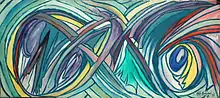 Désireux de créer une rupture avec la représentation figurative, son écriture navigue entre une semi-abstraction et un expressionnisme assez marqué, incluant des éléments décoratifs (frises, masques stylisés..) extraits de l'esthétique rituelle africaine.