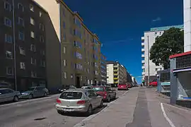 À l'intersection de la troisième ligne et d'Hämeentie se trouve l'un des plus anciens immeubles résidentiels de Kallio, une maison en briques rouges de 1913 conçue par Werner von Essen[2].