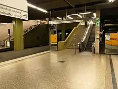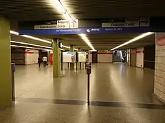 Étant une station de bifurcation elle dispose d'un quai central encadré par deux voies et une troisième voies avec un quai latéral. Elle est également desservie par les rames des lignes de renforts de l'exploitation U7 et U8[4],[5],[6].
