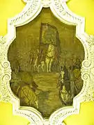 - la remise des bannières de commandement des gardes soviétiques sur la place Rouge en présence de Staline. Elle fut remplacée depuis par une mosaïque représentant Lénine prononçant un discours sur cette même place