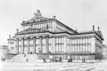 Ce temple néoclassique, achevé en 1821, constitue en effet une œuvre maîtresse de Karl Friedrich Schinkel, qui s'inspira fortement de l'antiquité grecque. Il fut élevé à l'emplacement du Théâtre national édifié par Carl Gotthard Langhans sous le règne de Frédéric II de Prusse, détruit par un incendie en 1817, et dont seules six colonnes ioniques subsistent. Baptisé à l'origine Schauspielhaus, l'édifice de Schinkel fut inauguré le par la première de l'opéra Der Freischütz de Carl Maria von Weber. Sur le fronton principal, la statue d'Apollon et son char de Christian Daniel Rauch salue les visiteurs qui empruntent l'escalier majestueux réservé - à l'époque - au public roturier. La noblesse était, quant à elle, déposée par les fiacres devant une entrée particulière située sous l'escalier. Les statues et reliefs, qui accentuent l'élégance de l'édifice, ont été sculptés par Tieck d'après des dessins de Schinkel. Pour ce projet de théâtre qui lui tenait particulièrement à cœur, Schinkel s'était aussi chargé de la décoration intérieure, veillant au moindre détail.