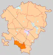 Les localités limitrophes sont Sinevo au nord-nord-est ; Khotilovo à l'est-est-nord, Komsomolski au sud-ouest, Gradobit à l'ouest-ouest-sud et Koujenkino (il y a un village du même nom que la commune) au nord-nord-ouest.