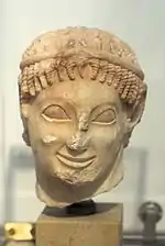 Le célèbre « sourire archaïque » pourrait avoir trouvé une origine dans la mode que traversait l'art égyptien sous la XXVIe dynastie (664-525) : en effet à cette époque un léger sourire illumine discrètement les visages des statues[9].