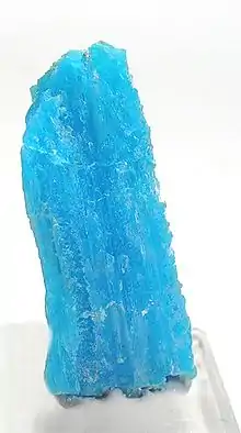 | Habitus | cristaux prismatiques courts ou longs, (pseudo-)octaédriques, agrégats granulaires, parfois épais, de cristaux aciculaires ou fibreux, formes massives, grenues ou fibreuses, parfois colonnaires ou en colonnes, en croûtes fibreuses ou en incrustations poreuses... |