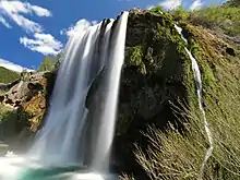 Sur son parcours, la rivière forme une cascade (en croate : slap Krčić), haute de 22 m ; cette cascade est également connue sous les noms de Veliki buk et Topoljski buk. Une forteresse située sur une hauteur à proximité de la cascade, existait autrefois, protégeant le pont qui franchissait la rivière.