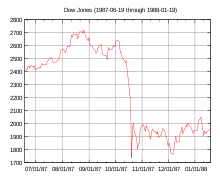 Le Dow Jones n'a fait que retomber à sa valeur de 1986, l'année 1987 s'étant caractérisée par une montée fulgurante mais fragile de son cours[8].