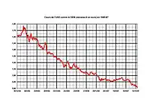- les importantes et brutales fluctuations du dollar au milieu des années 1980 dans le système de changes flottants (adopté depuis ) et entériné avec les accords de la Jamaïque (1976) ;