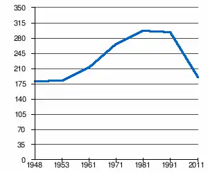 - (sq) « Évolution de la population 1948-2011 », sur pop-stat.mashke.org (consulté le ).