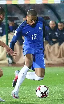 Kylian Mbappé (prononcé /ki.ljan m͡ba.pe/ ), né le à Paris, est un footballeur international français qui joue au poste d'attaquant au Paris Saint-Germain. Considéré comme l’un des meilleurs joueurs du monde[2],[3], il est reconnu pour la qualité de ses dribbles, son efficacité et sa vitesse exceptionnelle.