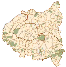 - Distance de la mairie par rapport à Notre-Dame, l'extrémité sud de la commune étant distante d'environ 1,8 km du Boulevard périphérique de Paris