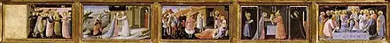 Ce tableau est le panneau principal d'une œuvre polyptyque, qui comporte une prédelle à plusieurs panneaux des scènes de la Vie de Marie